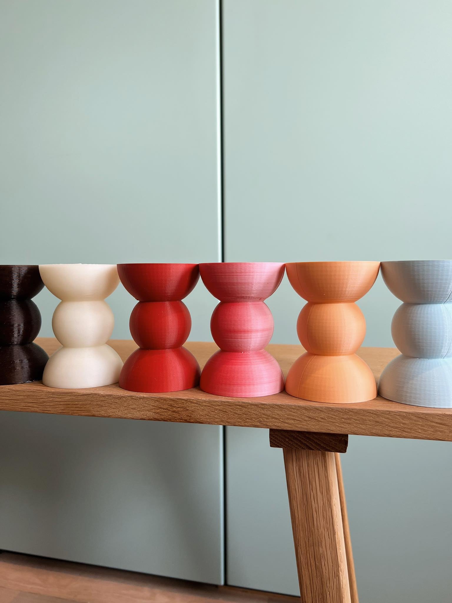 Elevate your space with our 3D-printed candle holders, designed by Emma and crafted from eco-friendly PLA. Available in various sizes and shapes, they add a modern, sustainable touch to any room.