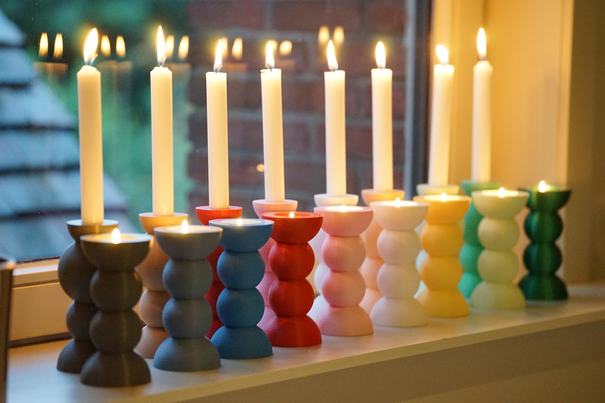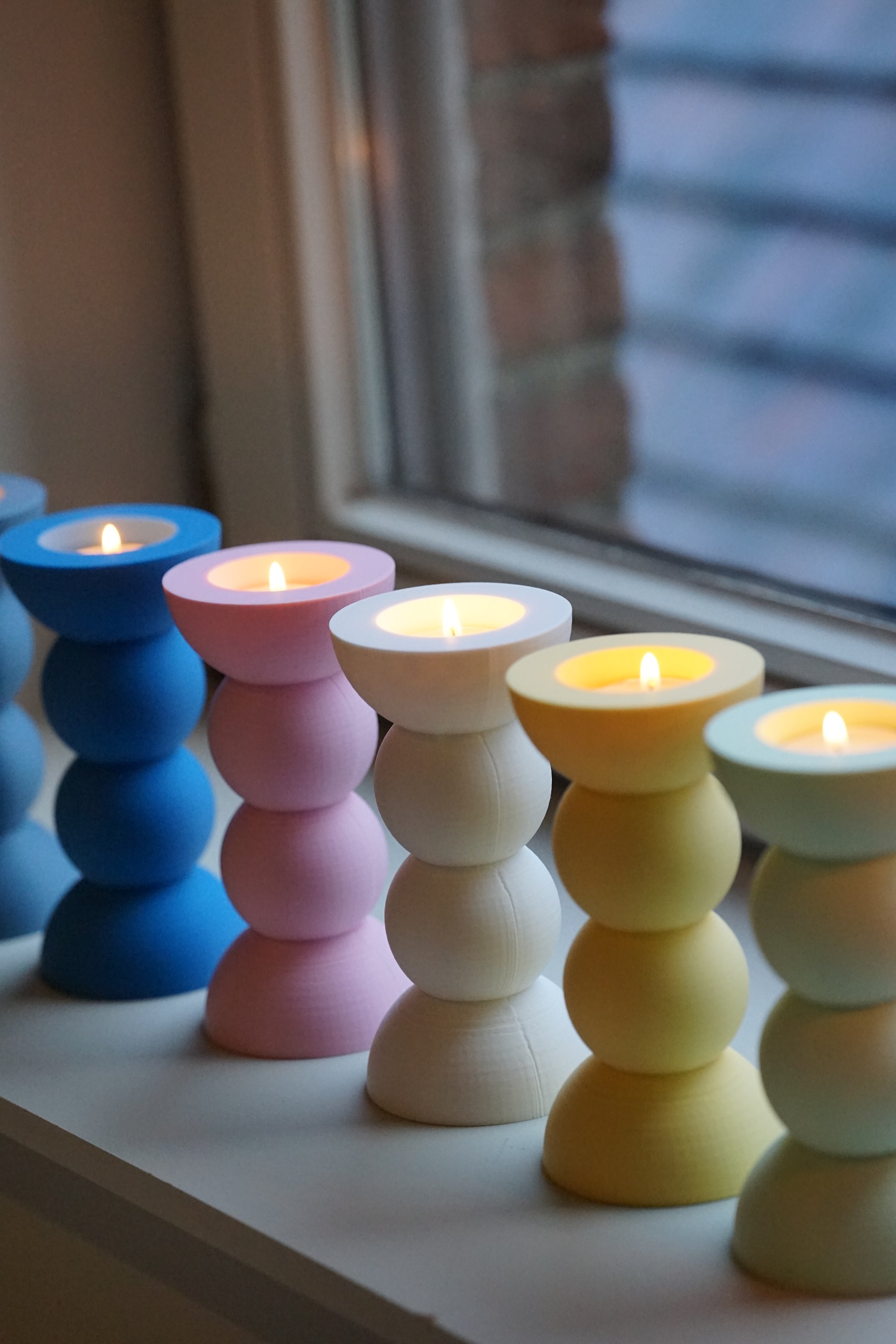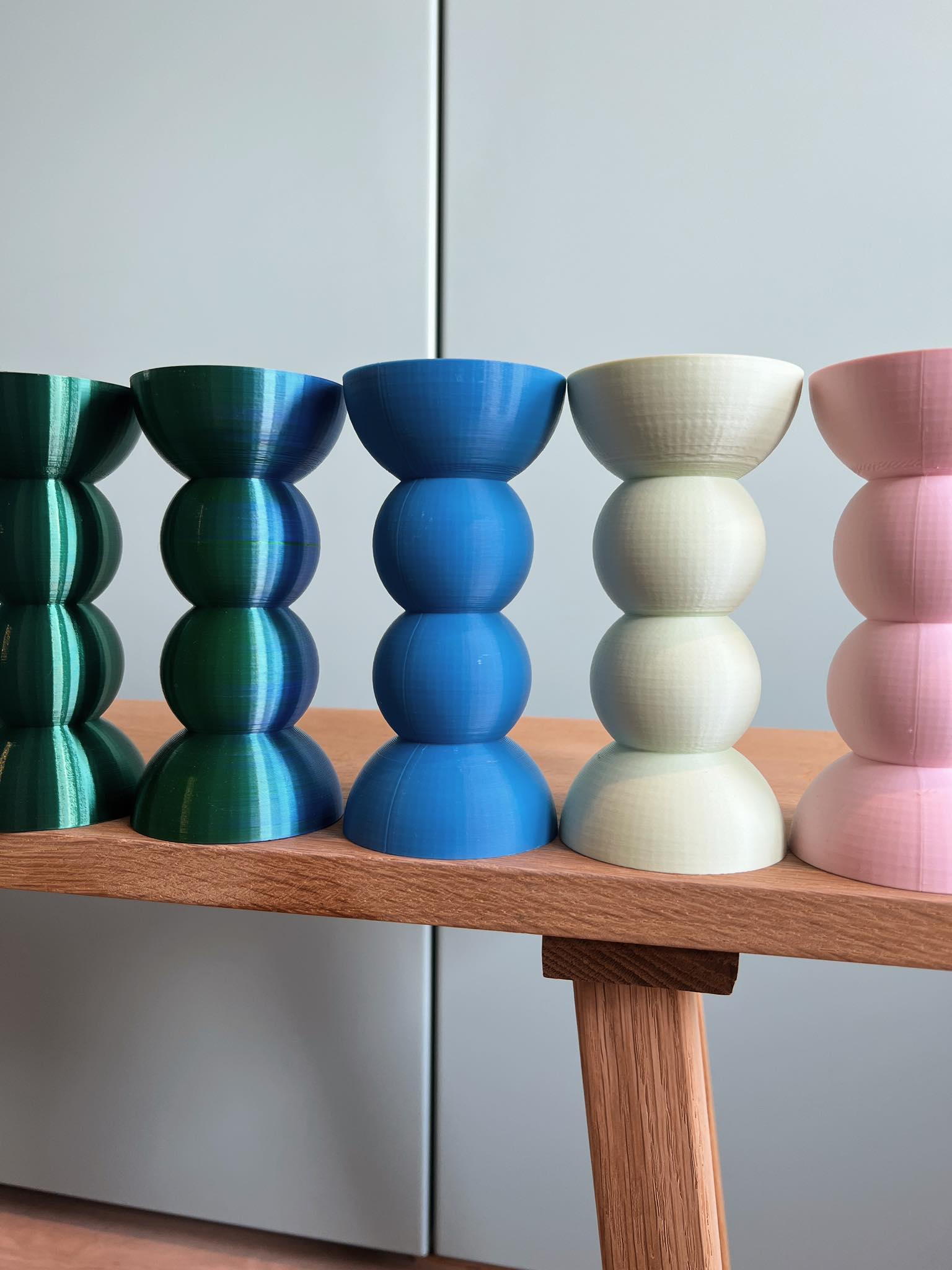 Elevate your space with our 3D-printed candle holders, designed by Emma and crafted from eco-friendly PLA. Available in various sizes and shapes, they add a modern, sustainable touch to any room.